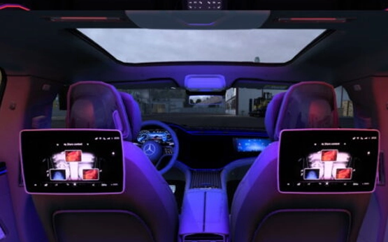 • Feel the luxury of the EQS cabin enhanced with added ambiance lamps. This function makes night journeys in a deeply impressive, futuristic, and immersiveatmosphere inside the car.
